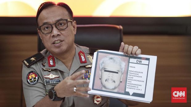 Polisi juga menangkap enam terduga pengaturan skor. (CNN Indonesia/Safir Makki) |