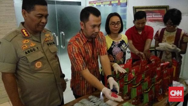 "Bentuk lebih kecil daripada ekstasi pada umumnya tapi kandungannya metamfetamin dan sudah dicek ini bentuk terbaru. Dikemas di dalam Teri Medan," ujarnya di Polda Metro Jaya, Jumat (18/1).