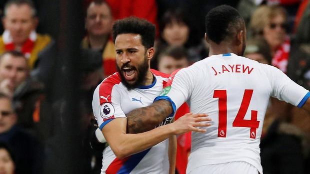 Andros Townsend membuat Crystal Palace unggul 1-0 atas Liverpool pada babak pertama. (REUTERS/Phil Noble) |