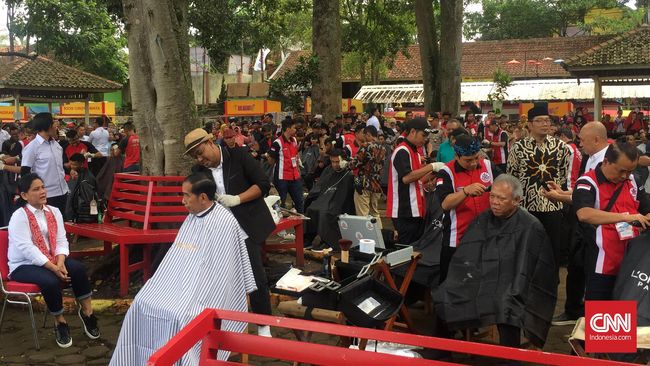 Selain Jokowi, Menteri Pekerjaan Umum dan Perumahan Rakyat (PUPR) Basuki Hadimuljono dan Kepala Sekretariat Kepresidenan Heru Budi Hartono ikut bagian dalam cukur rambut massal ini.