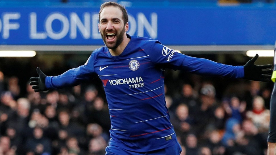 Chelsea merayakan pesta gol ke gawang Huddersfield Town dengan kemenangan telak 5-0 dalam lanjutan pertandingan Liga Inggris di Stamford Bridge, Sabtu (2/2).http://bit.ly/2S5yfdb