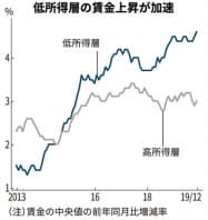 3.6%という歴史的な低失業率にともなう人手不足も深刻になっている。アトランタ連銀の分析では、米国の低所得層の賃金は19年12月に前年同月比で4.6%上昇し、高所得層(3.0%)を大きく上回る。