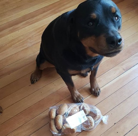 ジャーマン・ロットワイラーのジェイキー(メス 6歳)は、家族だけでなく、なんと家族が買い置きしてあるパンを守ってくれるというのだ。