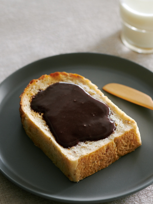 食料品店などで販売されているチョコシロップほどさらさらではありませんが、冷蔵状態でも片手で絞ることができて、トーストしたパンにかければ熱でさっと溶けてくれます。アイスにかけても固くなりません。