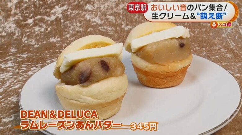 続いては、見た目がかわいい「ラムレーズンあんバター」(DEAN&DELUCA 345円)。こだわりのレーズンあんと発酵バターがよく合う人気のあんパンだ。