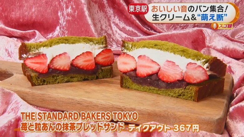 THE STANDARD BAKERS TOKYOの「苺と粒あんの抹茶ブレッドサンド」(テイクアウト367円)。