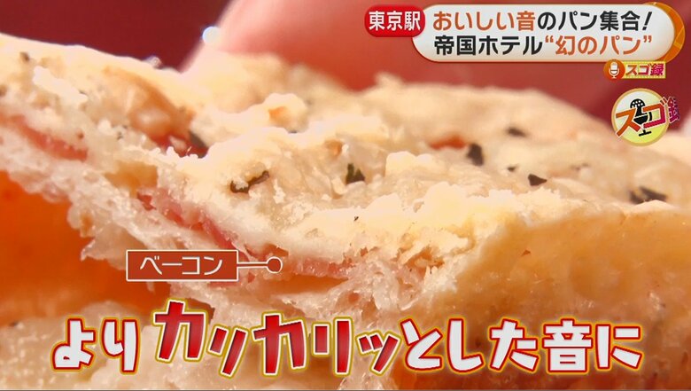 チーズだけでなくベーコンが生地に練り込まれているため、よりカリカリッとした音が生まれているという。