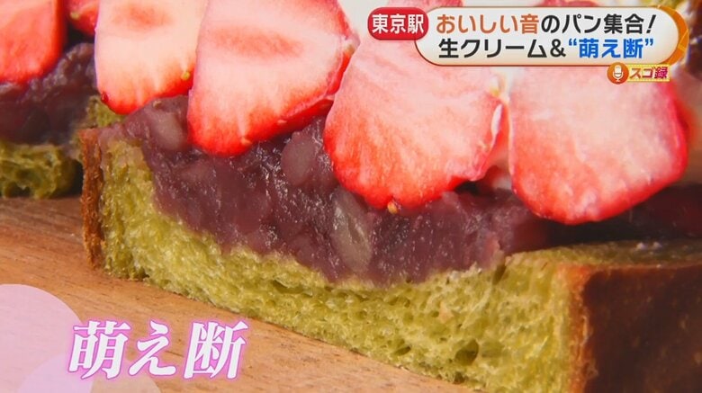 中の具材と抹茶色のパンのコントラストが美しい、まさに「萌え断」といえるこちらのサンドイッチ。もちろん見た目だけでなく、味も抜群。