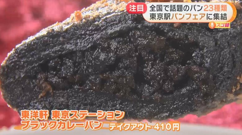 老舗洋食店が作る、中まで真っ黒の絶品カレーパン(東洋軒 東京ステーション「ブラックカレーパン」テイクアウト410円)。